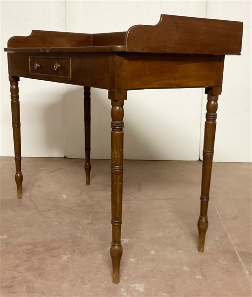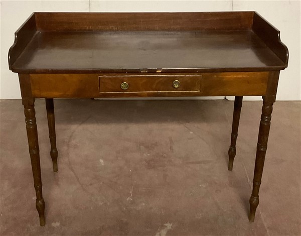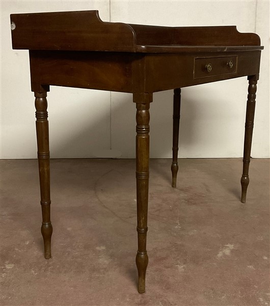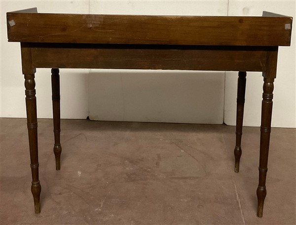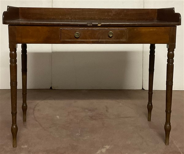 Tavolo scrittoio in mogano con cassetto sottopiano, gambe tornite (cm 108x87x54) (difetti)