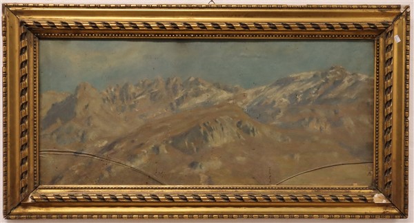Ignoto di fine XIX secolo "Il Resegone" olio su tela applicata su cartone (cm 34x75) In cornice (difetti)