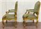 Coppia di poltrone in legno intagliato e dorato con schienale e braccioli sagom