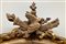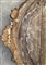 Specchio di forma ovale in legno e pastiglia dorata decorata a rilievo nella ci