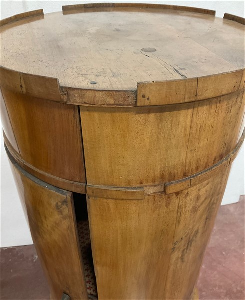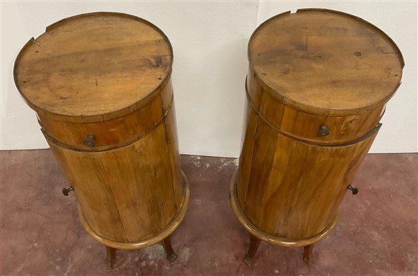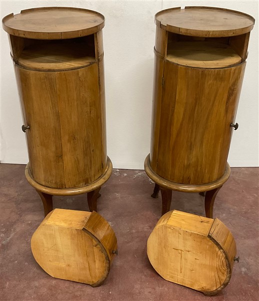 Pair of 19th-century walnut veneered bedside tables (defects) (h. cm 94; d. cm 37)