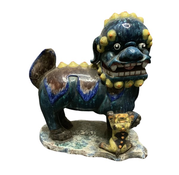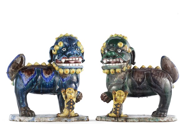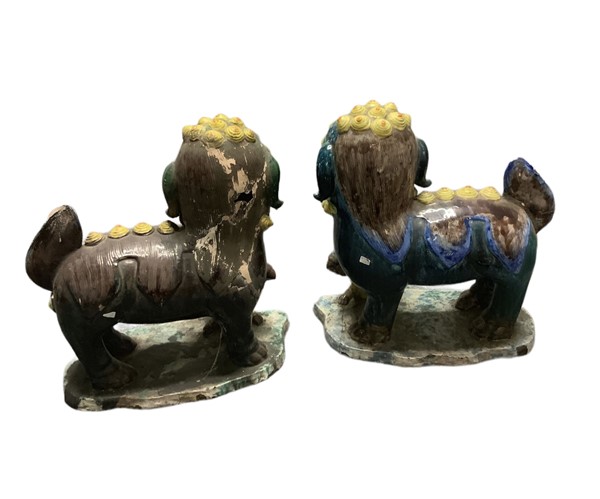 Lotto 1877 | Due cani di Pho in ceramica smaltata in policromia Cina, sec. XIX-XX (gravi dif