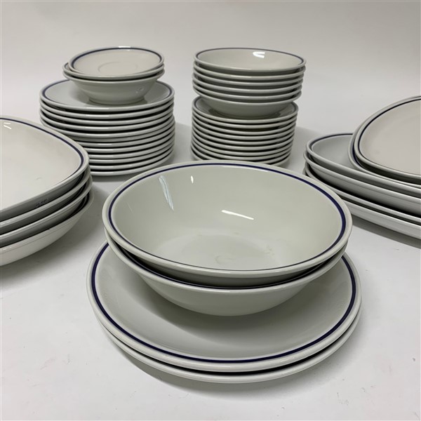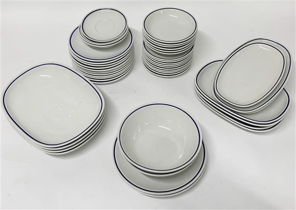 Manifattura Tognana, parte di servizio in porcellana bianca con filetto blu cob