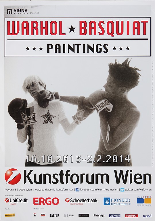 ANONIMO Warhol-Basquiat. Paintings. 2013. Poster. Cm 60,00 x 84,00. Manifesto della mostra presentata da Signa Holding al Kunstforum, Vienna di Andy Warhol e Jean-Michel Basquiat, 1985, Unicat Sammlung Bischofberger, Schweiz, The Andy Warhol Foundation for the visual arts, Inc., N.Y.