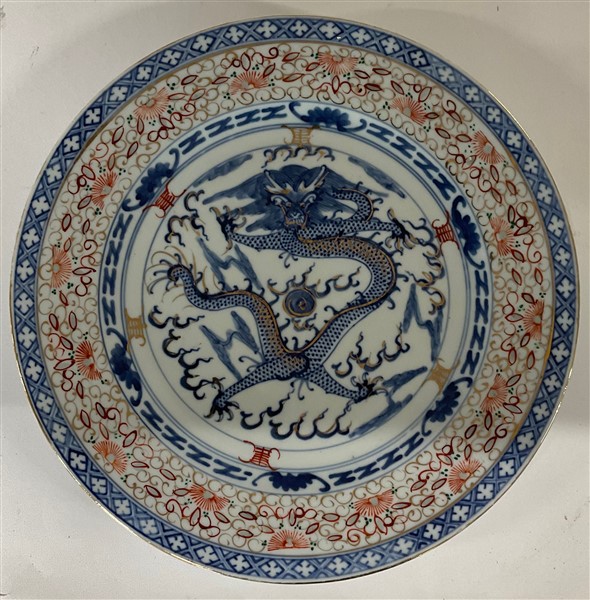 Piatto in ceramica policroma raffigurante drago Cina, sec. XX (d. cm 26)