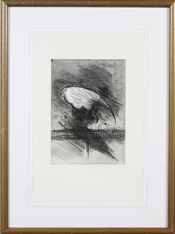 GHERMANDI QUINTO (1916 - 1994) Senza titolo. Acquaforte. Cm 54,00 x 73,00. Misure lastra 34x24,5 cm. Tir. 73/80 e firma in basso a matita. Cornice presente