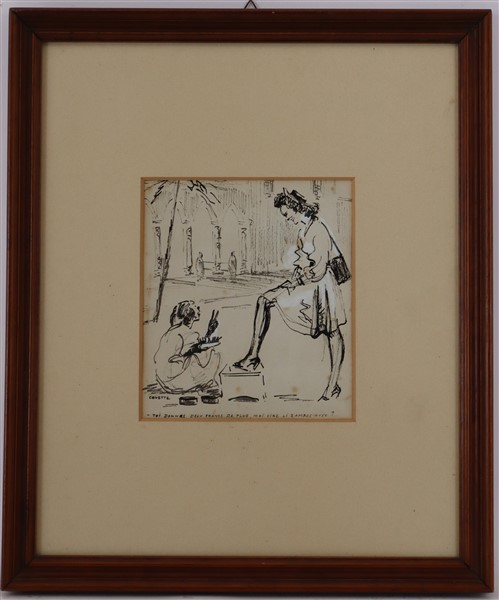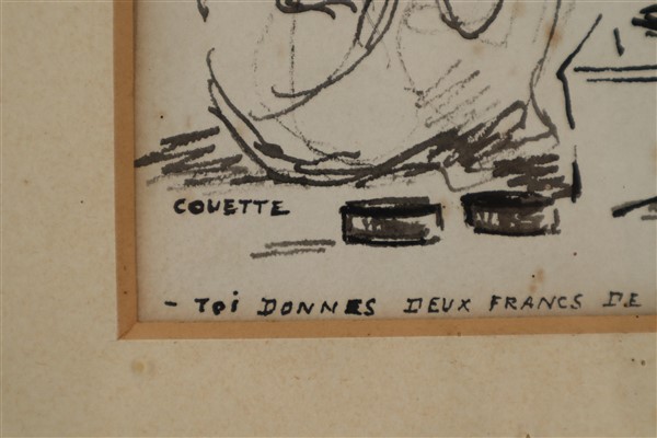 Firma indecifrata "Toi donnes deux francs de plus..." china e acquerello su carta (19,5x17) firmato e titolato in basso