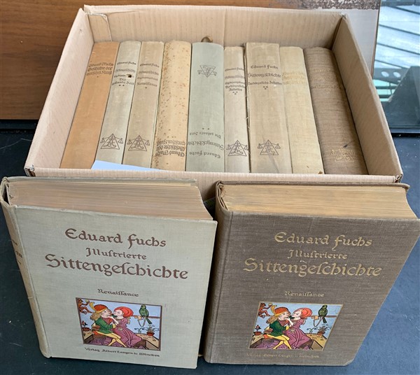 Un cartone contenente dodici volumi inerenti l'arte erotica e l'erotismo