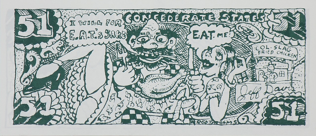 GROOMS RED (n. 1937) 51 dollari. 1971. Litografia. Cm 15,50 x 6,50. Art Cash set. Litografia facente parte di Experiments in Art and Technology (E.A.T.). Banconota stampata con inchiostro verde dalla Zecca su carta filigrana Americana.Edizione limitata.
