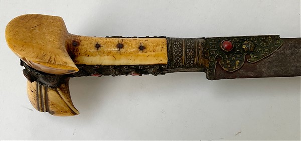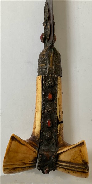Yatagan, Impero Ottomano, secolo XIX. Tipica impugnatura in osso ad orecchie ar