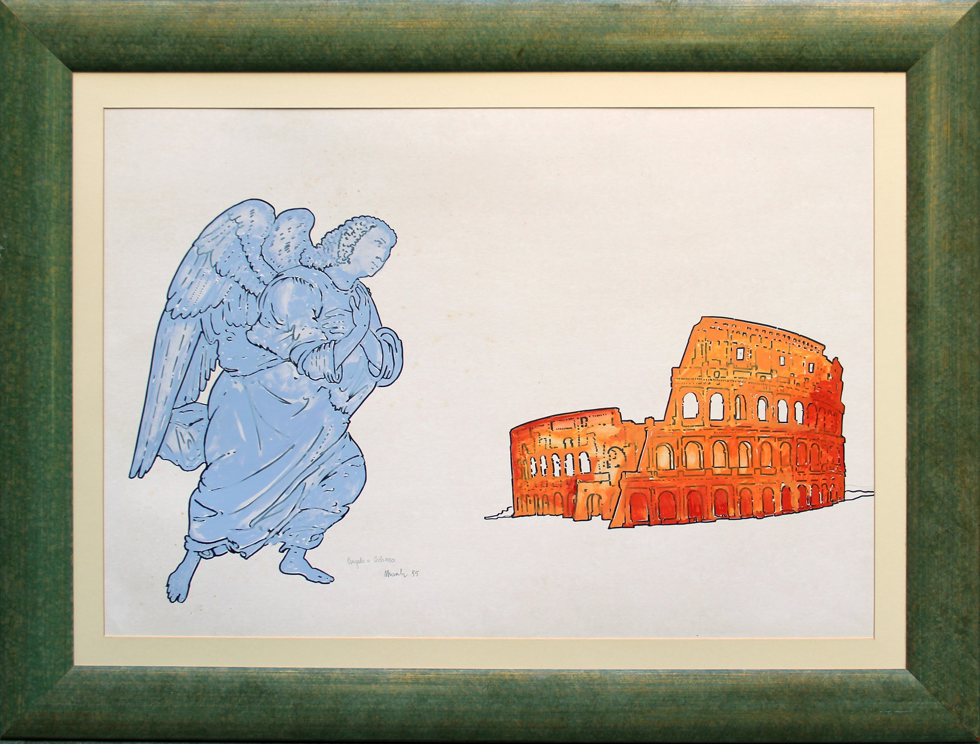 Angelo e Colosseo, 1995, tecnica mista su cartoncino, cm 70x100