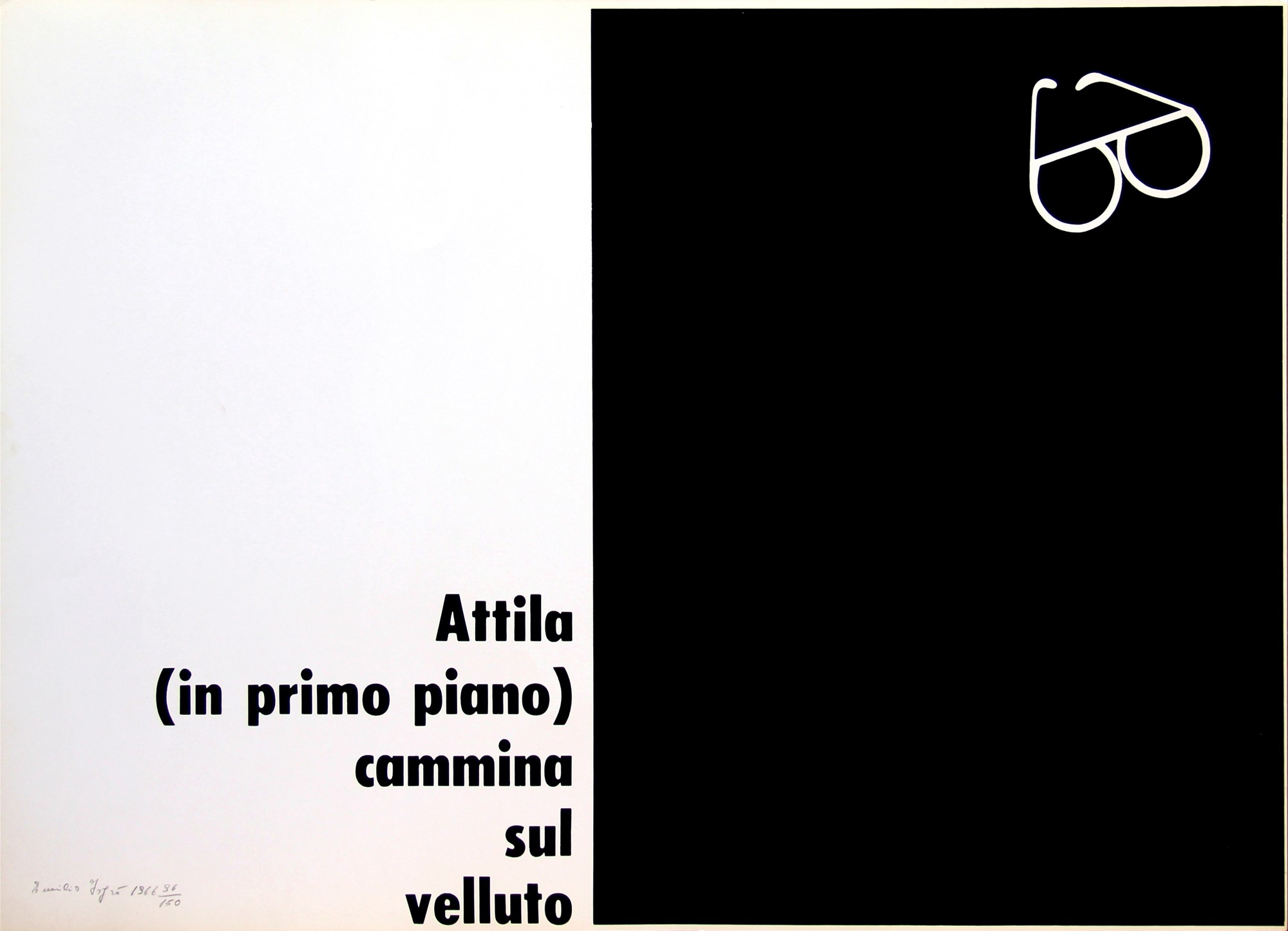 Firma, data, numerazione "Emilio Isgrò, 1966, 96/150" (in basso a sinistra)