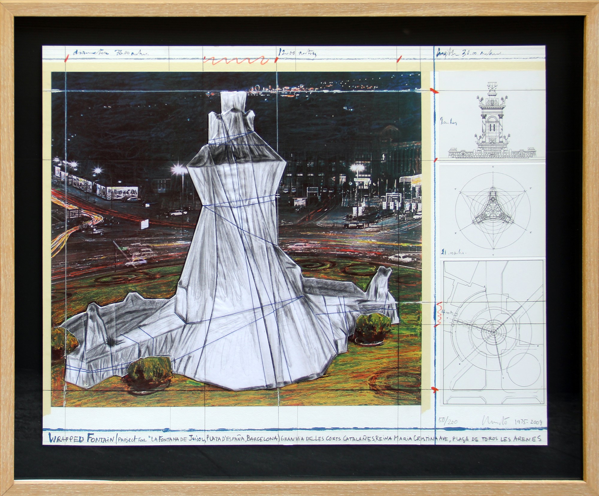CHRISTO Javacheff, Wrapped Fountain (Project for La Fontana de Jujol, Plaza de España, Barcelona)