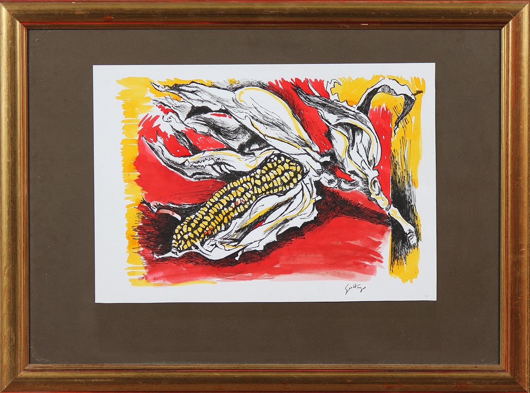 GUTTUSO RENATO (1912 - 1987) Pannocchia. Litografia. Cm 50,00 x 35,00. Firma in basso a destra. Cornice presente