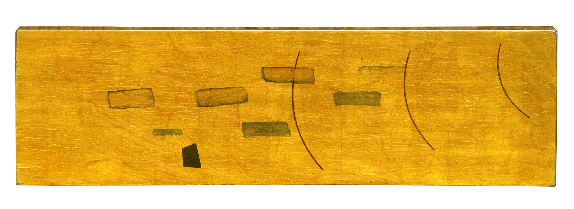 Incontri, 1974, foglia d'oro e tecnica mista su tavola, cm 22x76