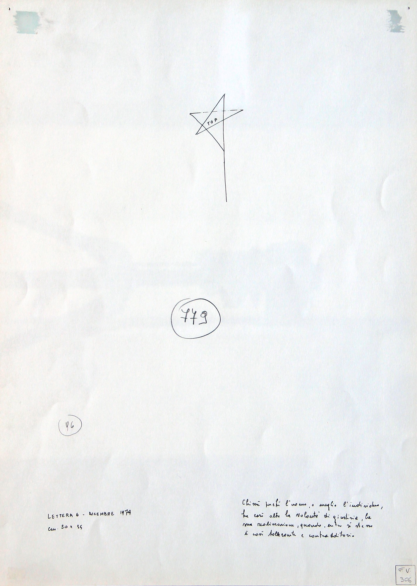 Titolo, data, misura, scritta "Lettera 6, Dicembre 1979, cm 50x35" (al retro)