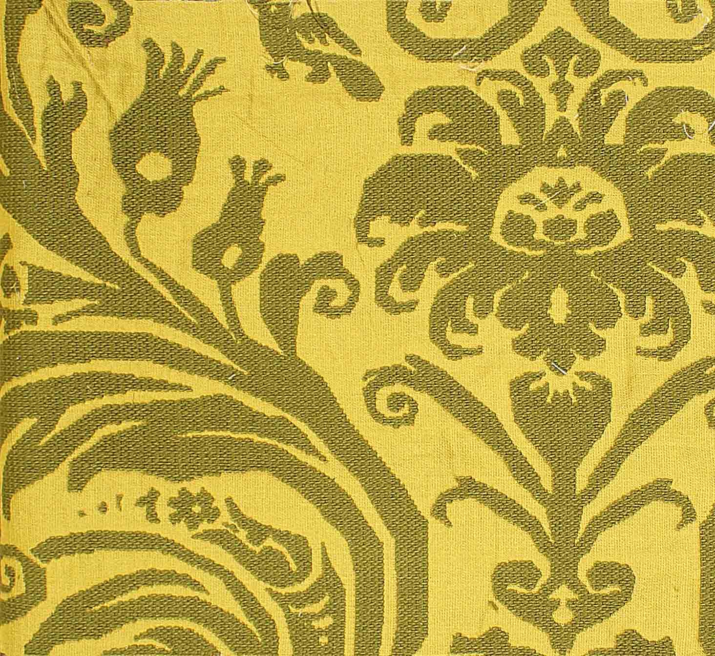Pezza damasco disegno '400 "Lucchese" giallo verde, m. 15 circa, h. cm. 130.