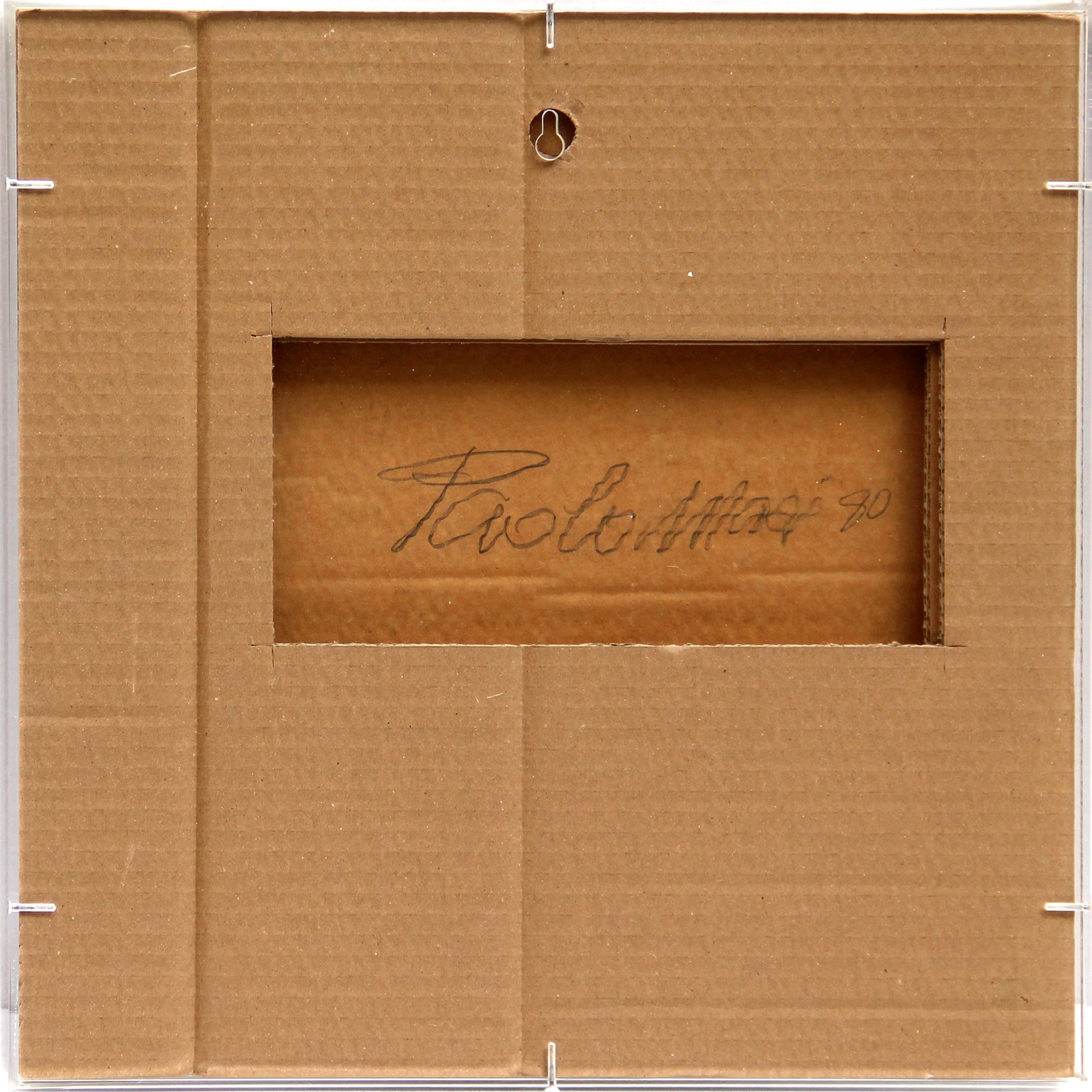 Senza titolo, 1980, tecnica mista su cartone in teca di plexiglass, cm 40x40