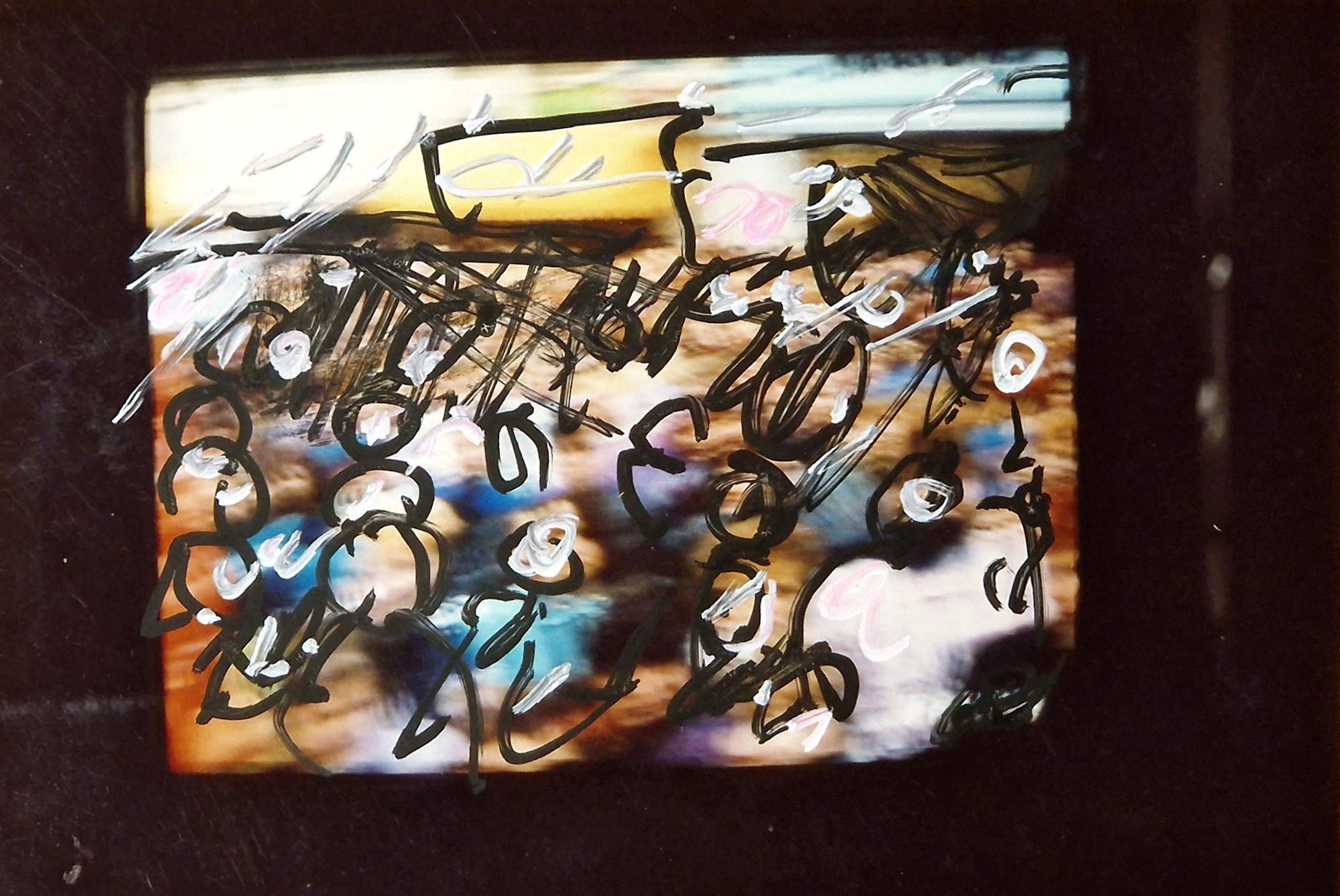 Senza titolo, 1990-95, pennarelli su fotografia dell'artista, cm 10x15