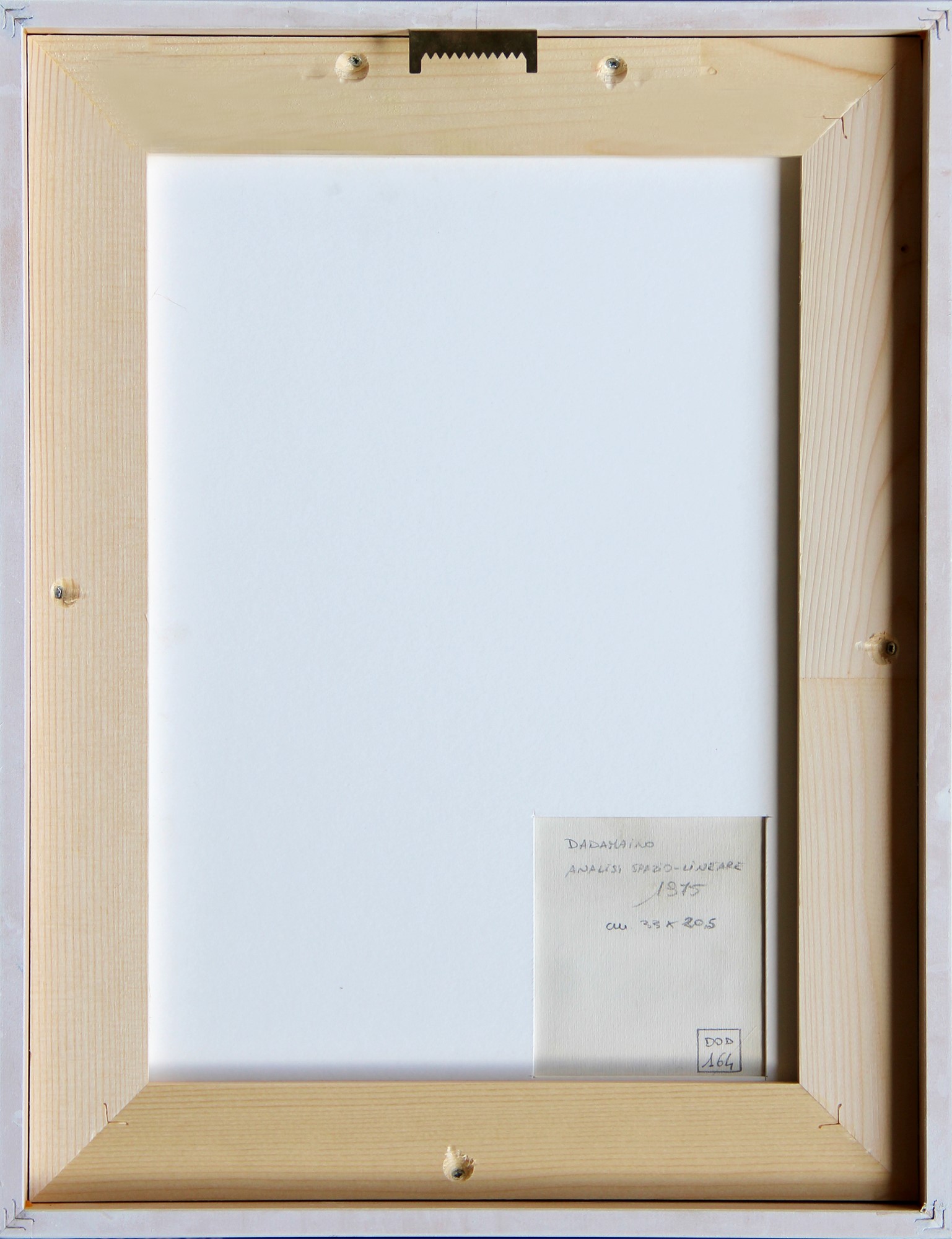 Firma, titolo, data, misura, numerazione "Dadamaino, Analisi spazio-lineare, 1975, cm 33x20,5, DOD 164" (al retro)
