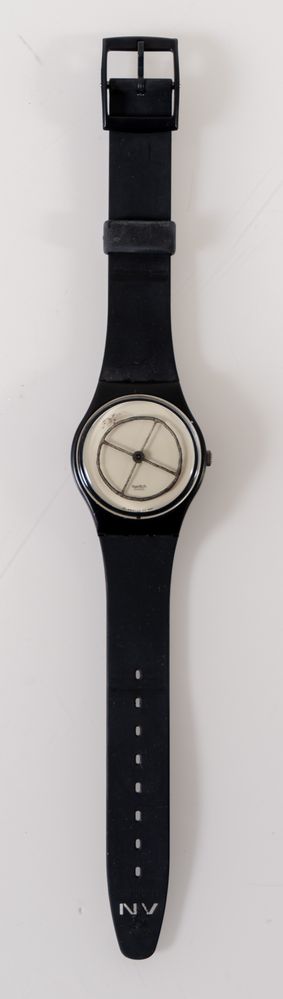 Diametro cassa 33 mm, cassa in plastica, cinturino in plastica, movimento al quarzo. Ideato in occasione dei 700 anni della Confederazione Svizzera nel 1991.