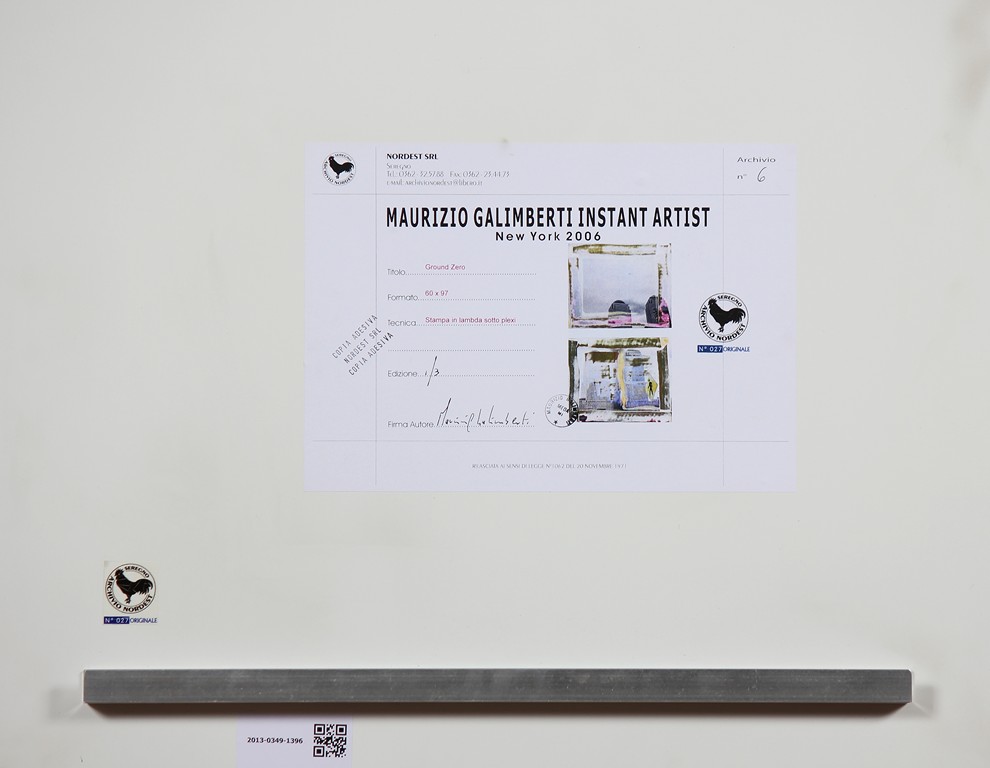 GALIMBERTI MAURIZIO (n. 1956) Ground Zero. Stampa in lambda sotto plexi. Cm 97,00 x 60,00. Edizione 1/3. Al retro cartiglio descrittivo dell'opera a cura dell'Archivio Nordest, Seregno. Opera archiviata presso l'Archivio Nordest, Seregno, come da documentazione fotografica allegata riportante il relativo numero d'archivio.