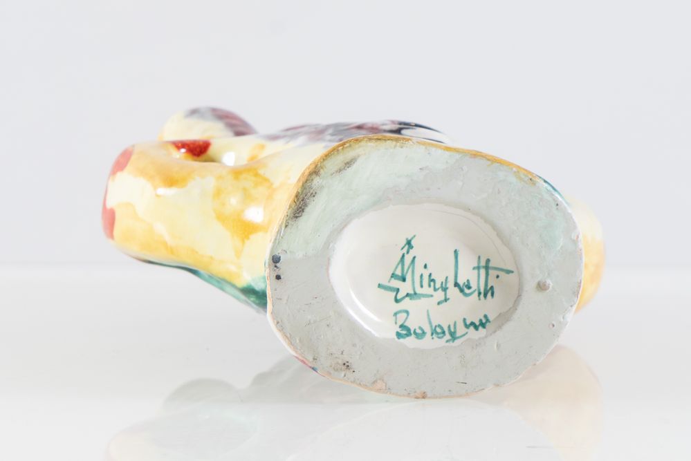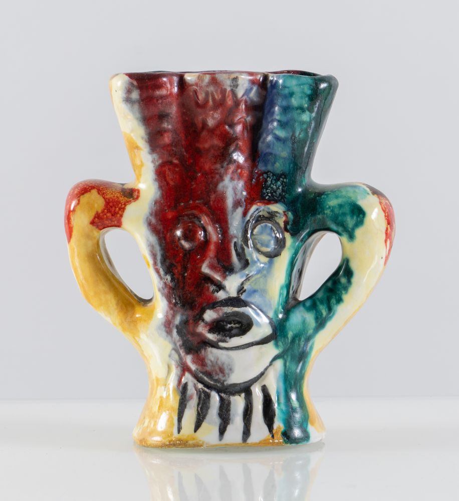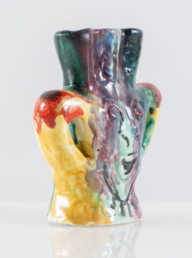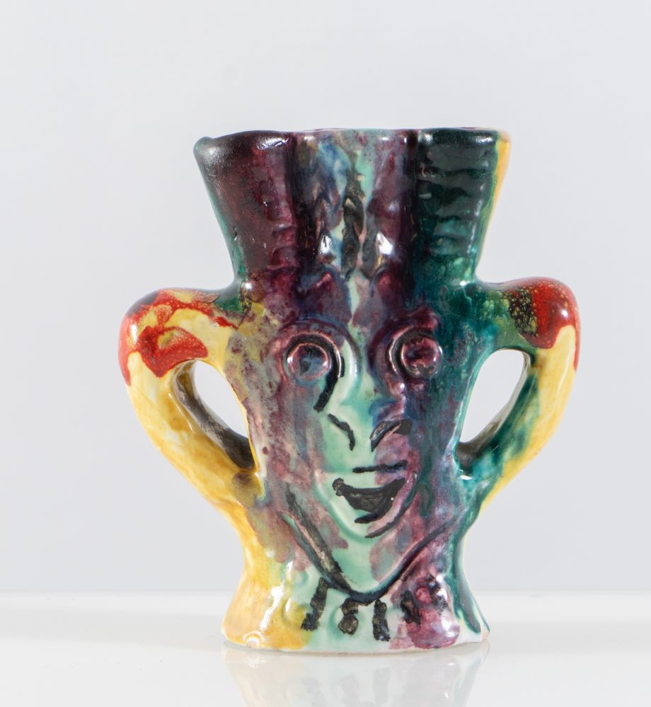 MANIFATTURA MINGHETTI vaso in ceramica policroma. Firma dell'artista. Lievi difetti. Prod. Minghetti, Italia, 1980 ca. Cm 14x12x6