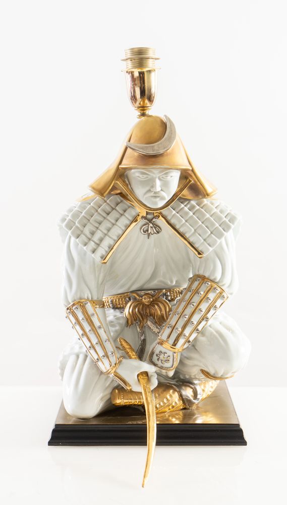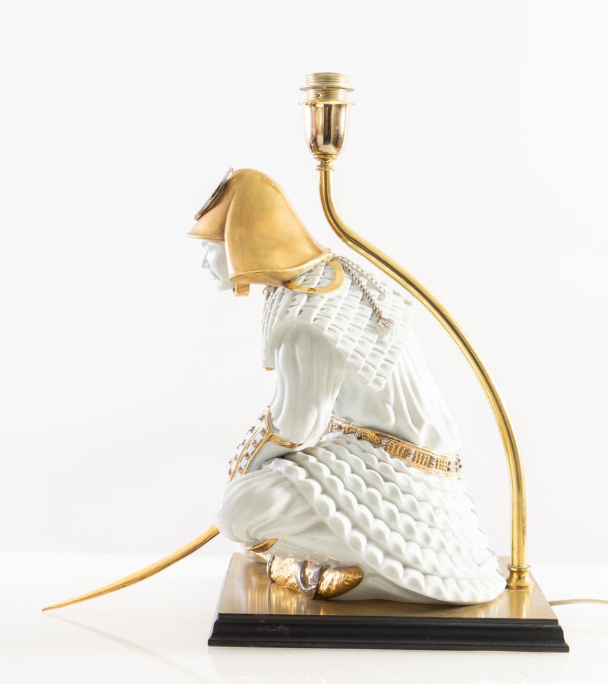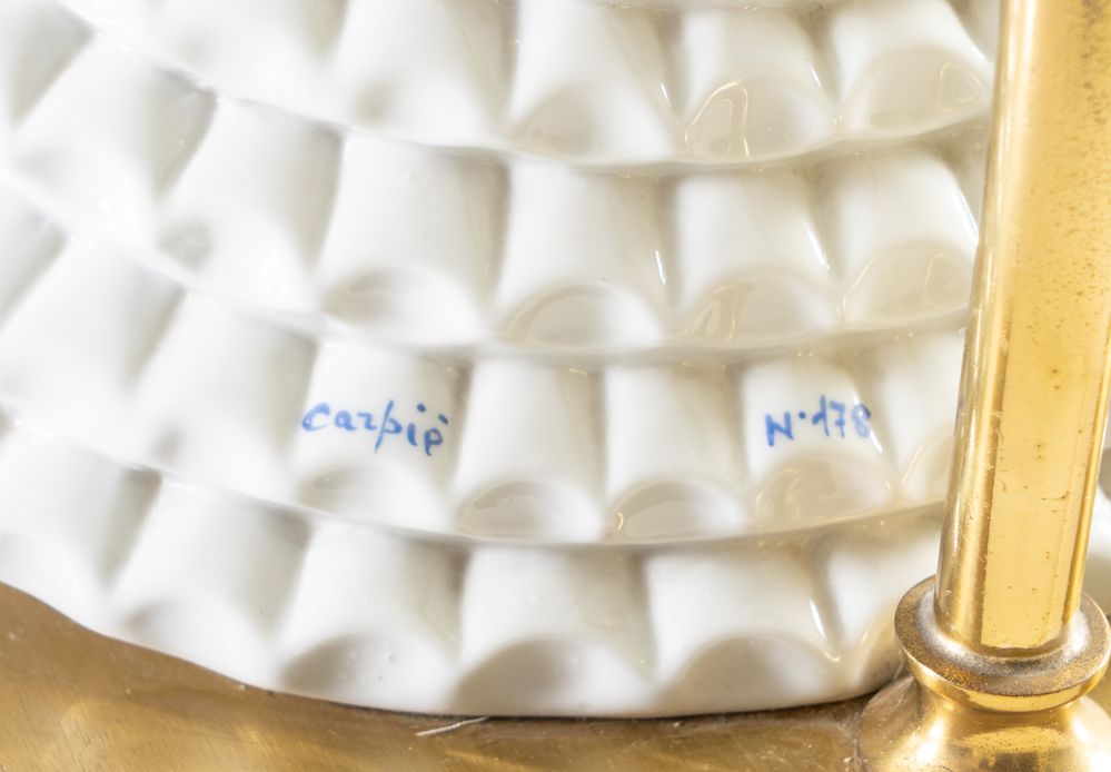 CARPIE' Lampada da tavolo con base in legno e metallo, il corpo in porcellana...