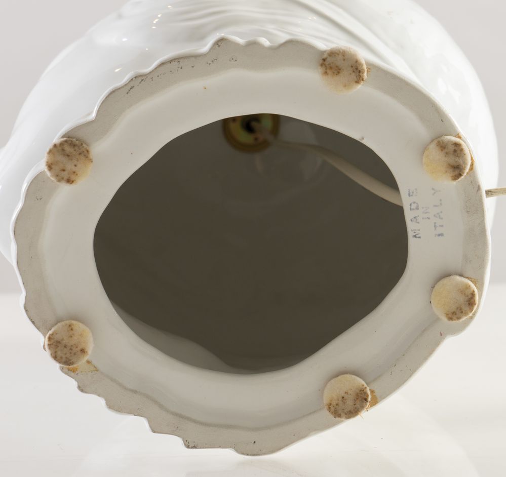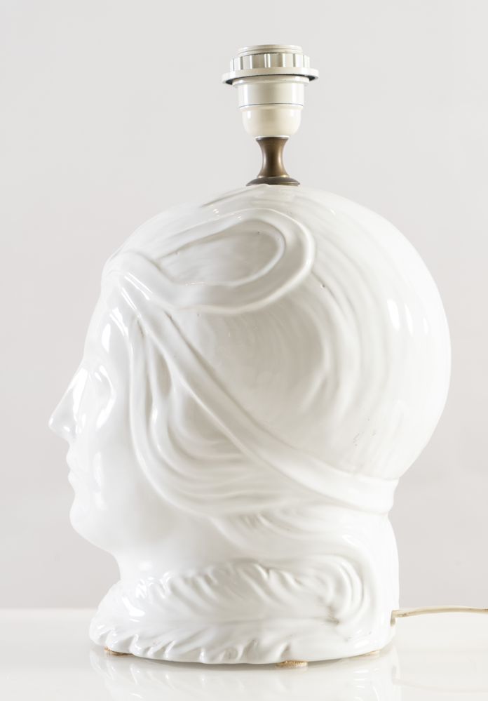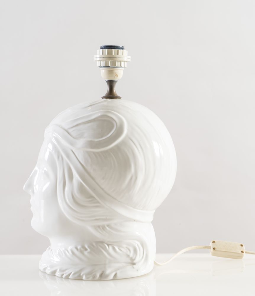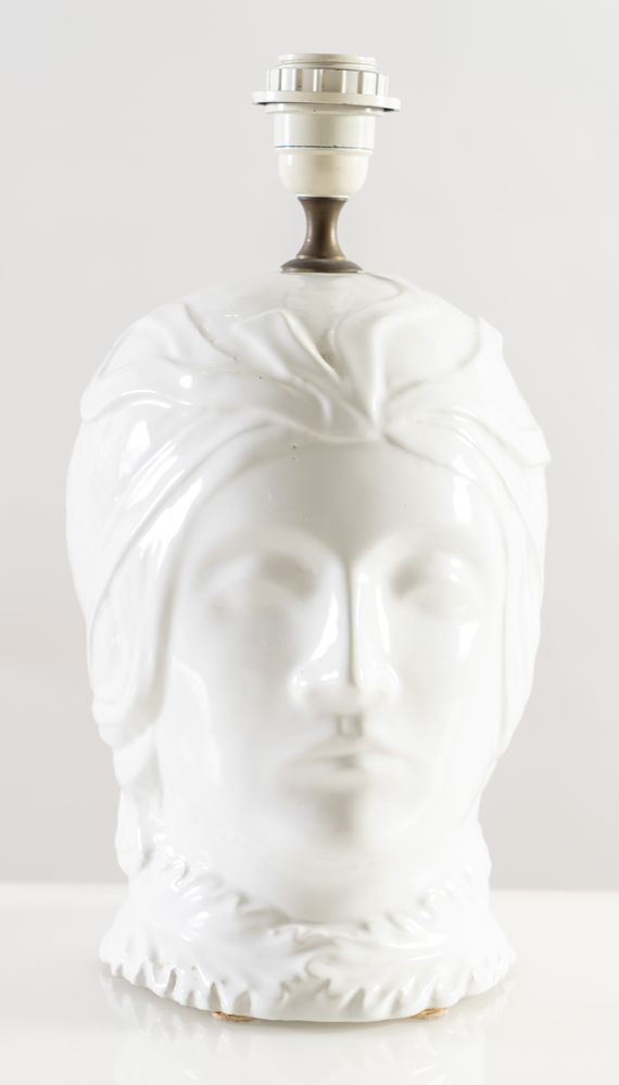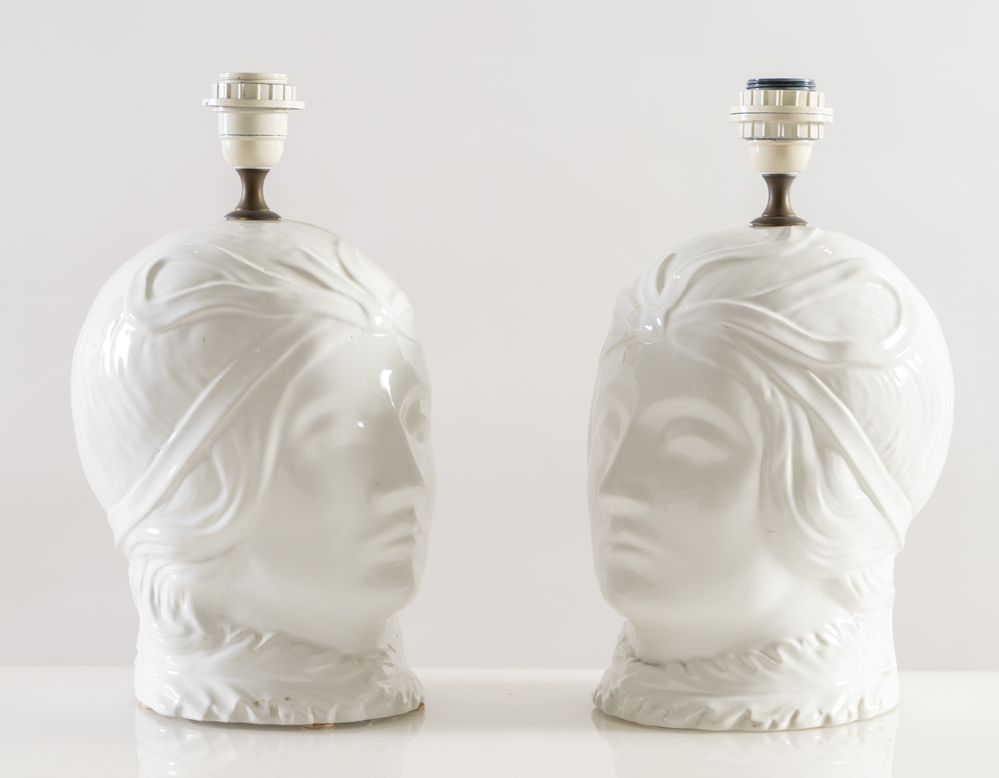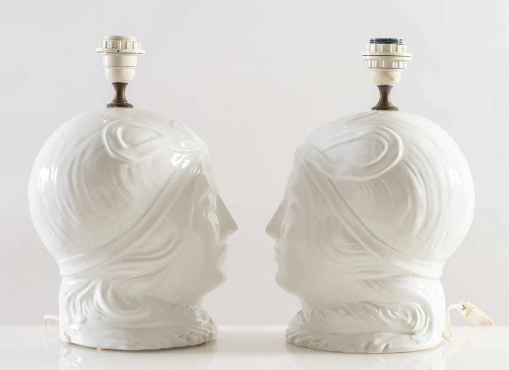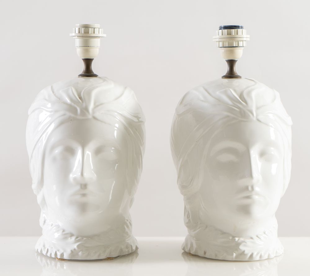 Coppia di lampade in ceramica smaltata. Prod. Italia, 1980 ca. Cm 38x20x25