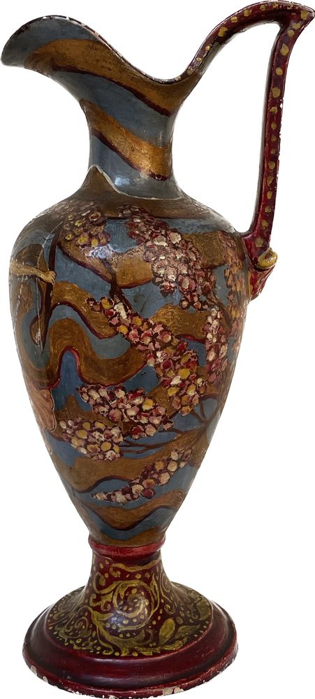 Brocca in ceramica dipinta. Lievi difetti. Prod. Italia, 1970 ca. Cm 34,5x16x13