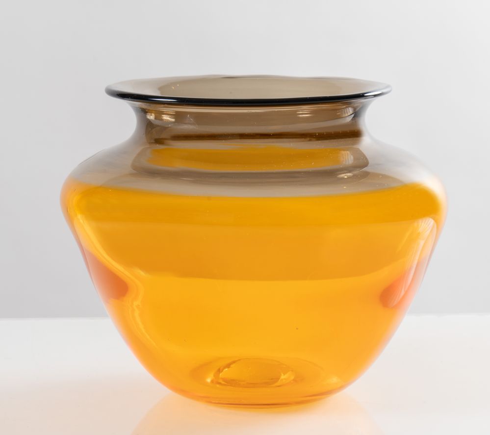 PETER KUCHINKE Vaso in vetro soffiato. Firma incisa del produttore. Prod. Seguso vetri d'arte, Italia, 1980 Cm 16x20x20