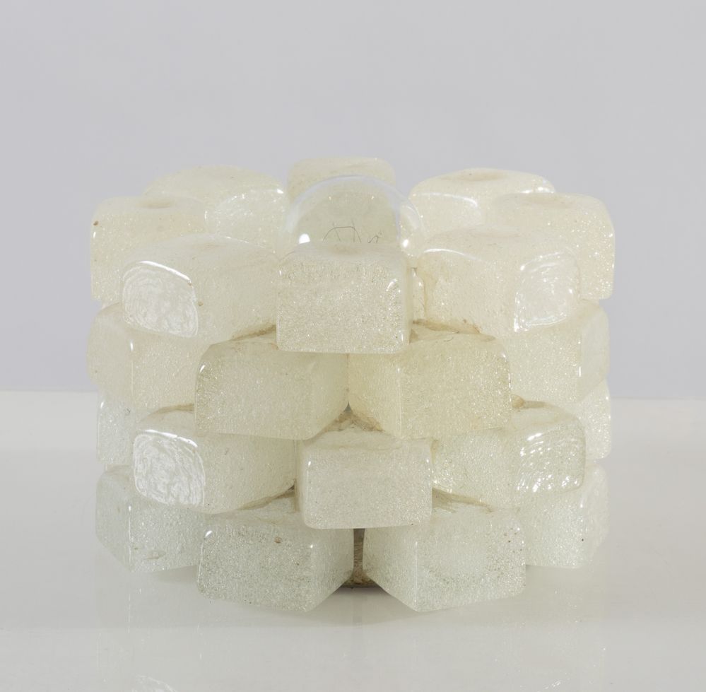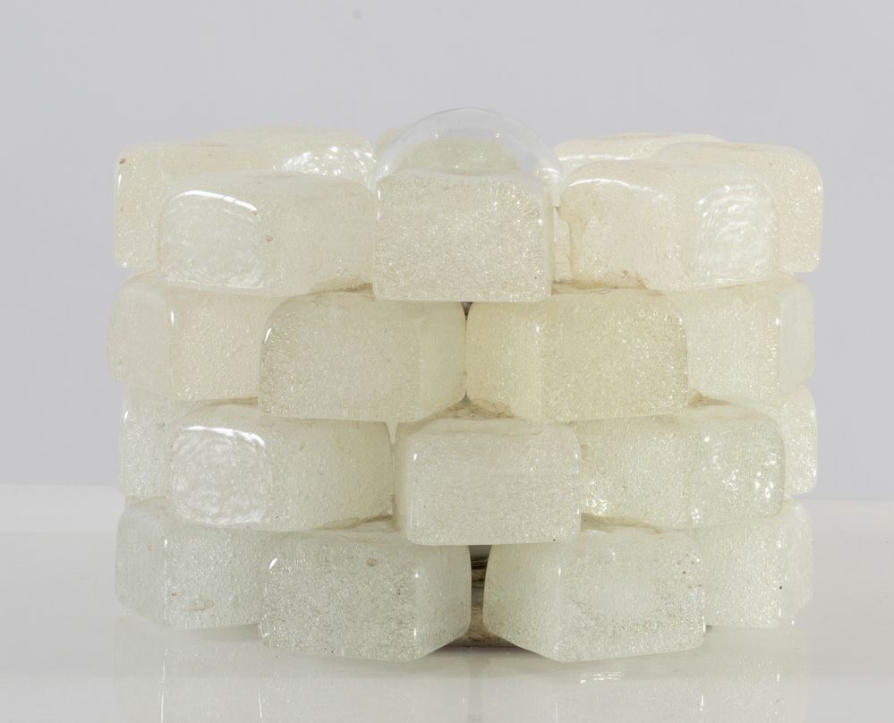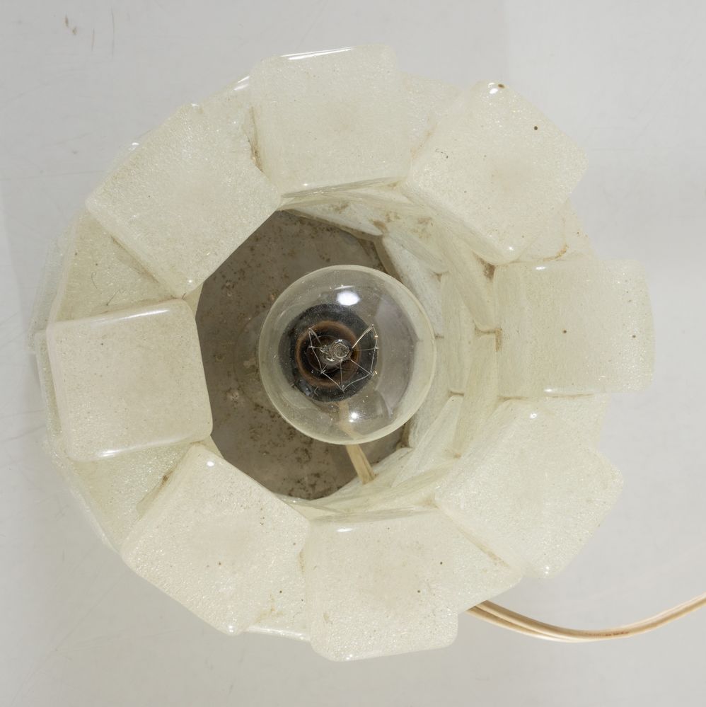POLIARTE (Attribuito) Lampada da tavolo in metallo e vetro. Prod. Italia, 1970 ca. Cm 11x16x16