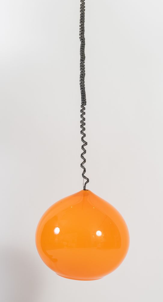 ALESSANDRO PIANON (Attribuito) Lampada da soffitto in vetro e metallo. Prod. Vistosi, Italia, 1960 ca. Cm 135x43x43