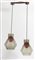 MARTINELLI LUCE Coppia di lampade da soffitto con struttura in palissandro, metallo e paralume in vetro. Con mancanze. Prod. Martinelli Luce, Italia, 1960 ca. Cm 96x54x24 Bibliografia: Pubblicazione su rivista