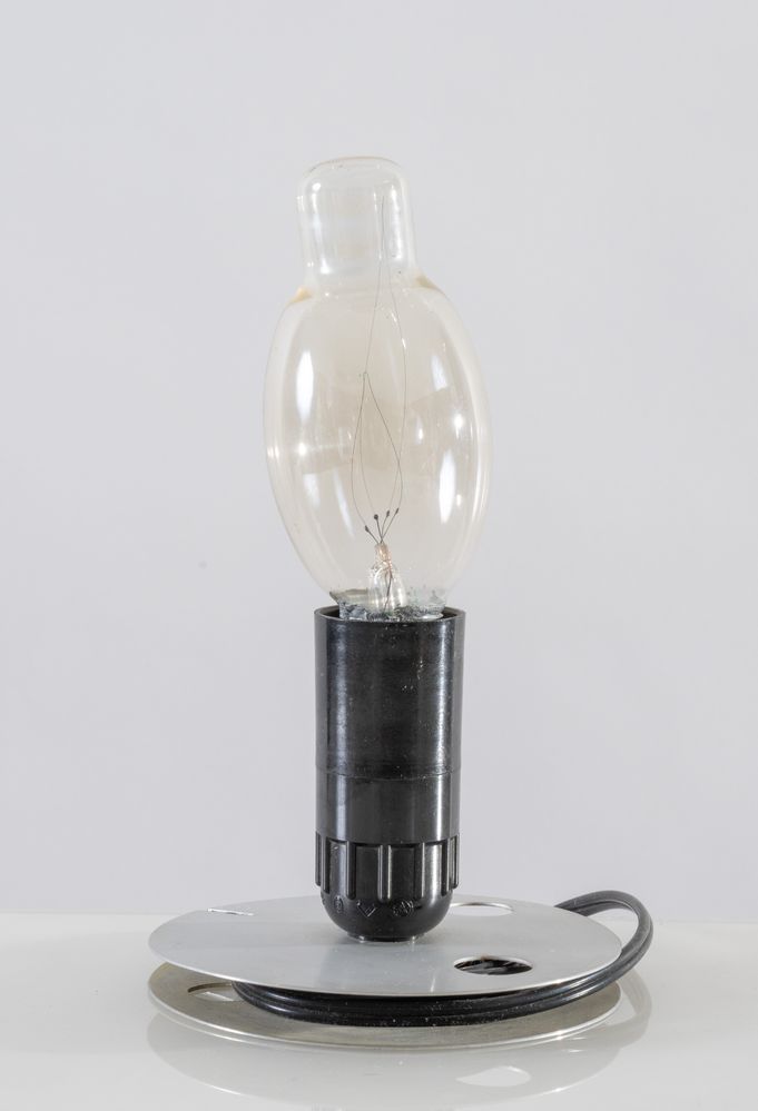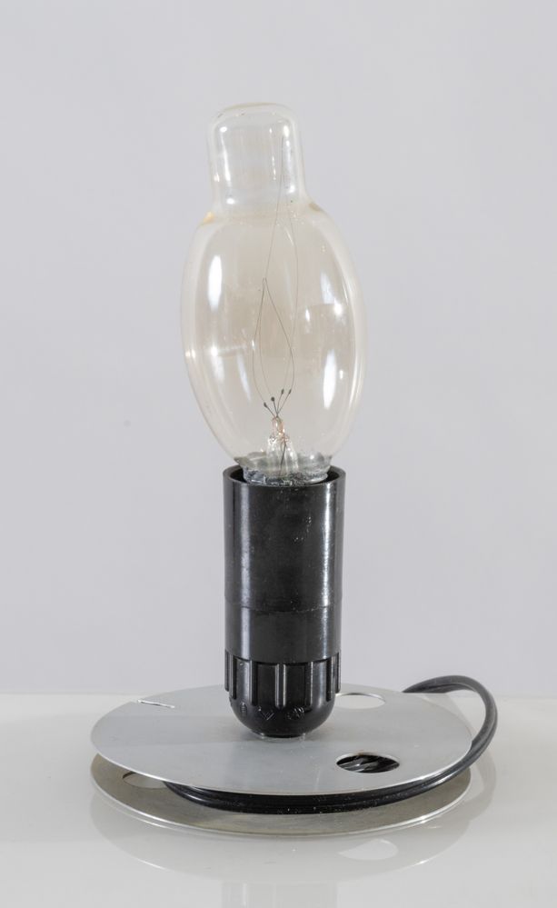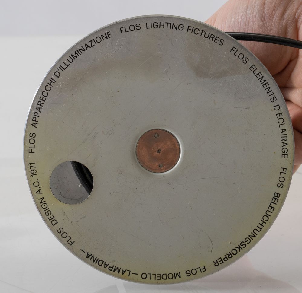 ACHILLE CASTIGLIONI Lampada da tavolo in metallo e plastica modello 'Lampadina'. Marchio originale. Prod. Flos, Italia, 1972 Cm 22x12,5x12,5