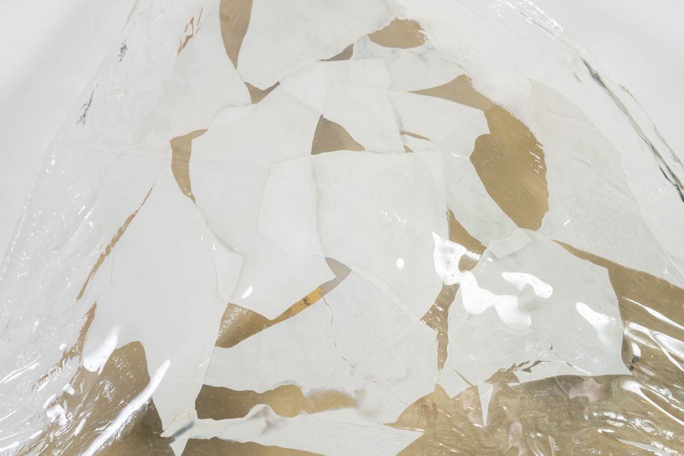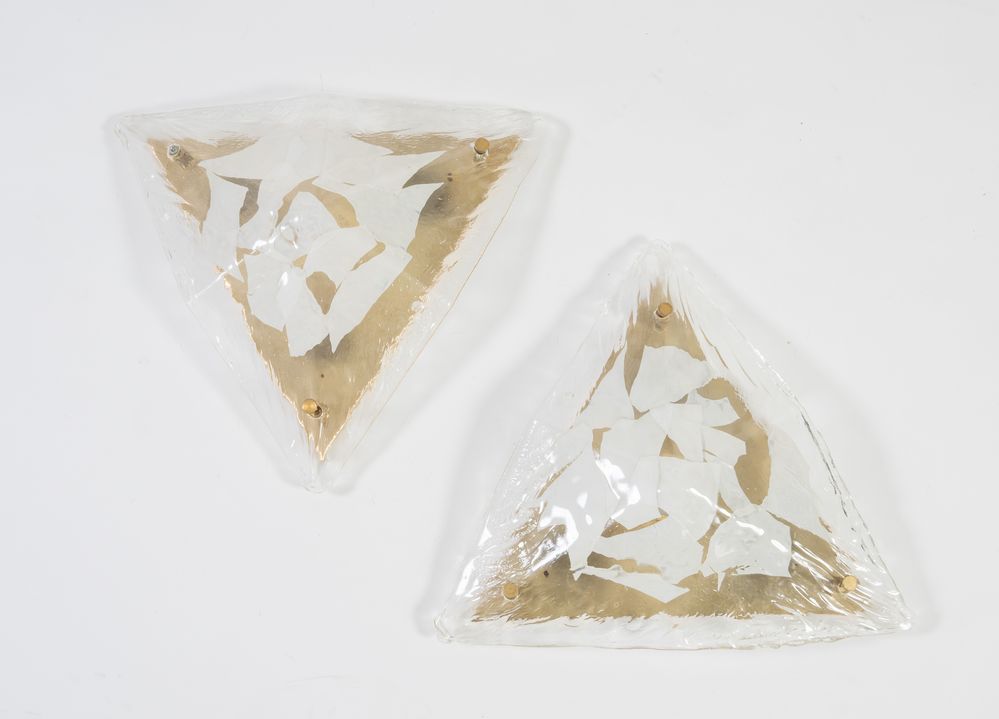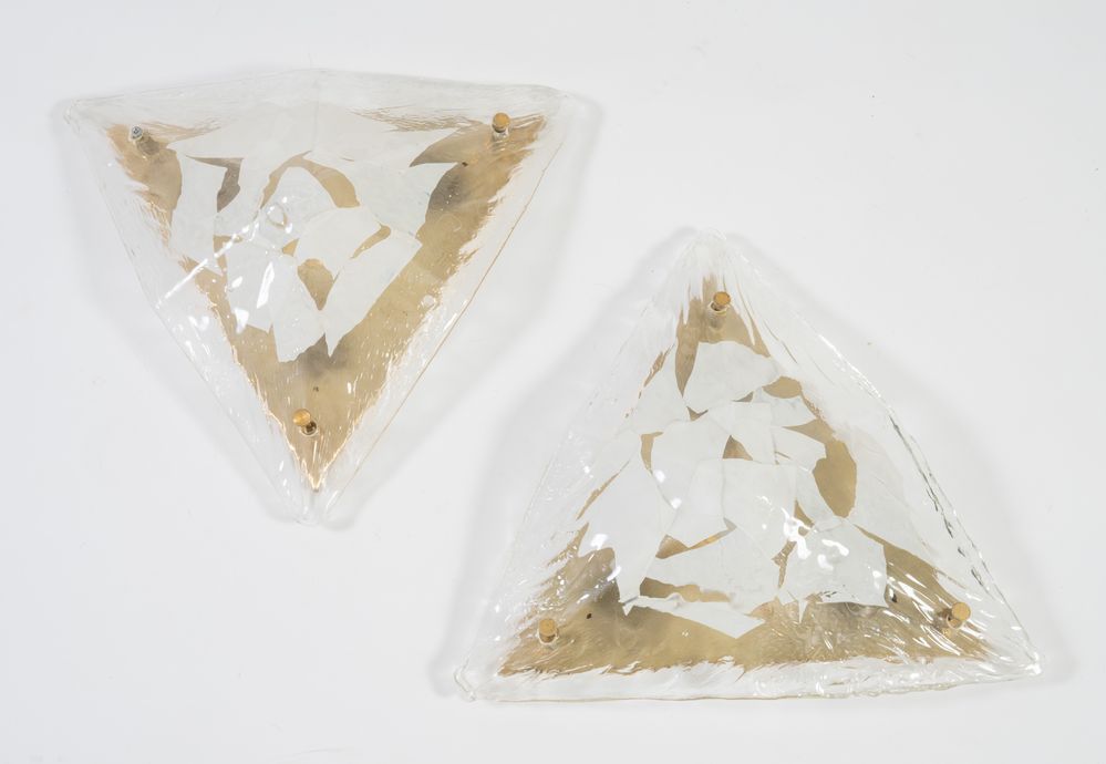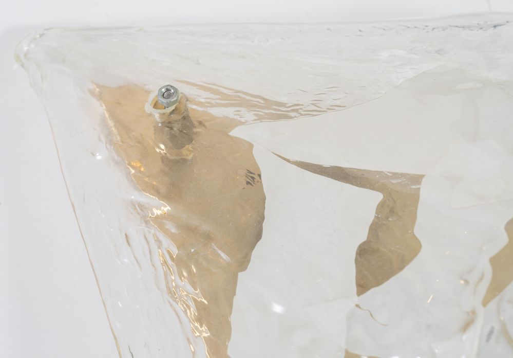 LA MURRINA Coppia di lampade da parete con struttura in metallo e paralume in vetro soffiato. Marchio originale. Lievi difetti. Prod. La Murrina, Italia, 1970 ca. Cm 40x40x13