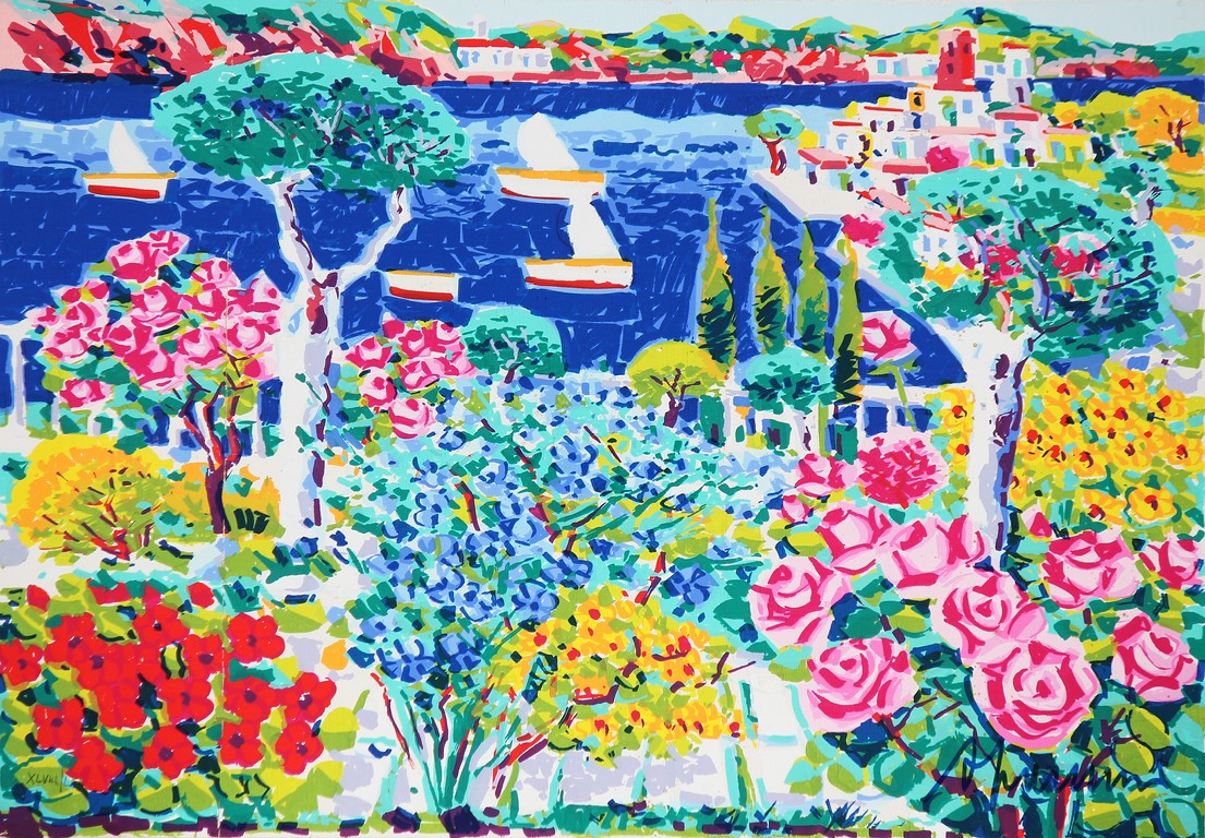 FACCINCANI ATHOS (n. 1951) Il canto dei grandi ulivi sul lago. Serigrafia su tavola. Cm 50,00 x 35,00. Tir. XLVIII/L e firma in basso. Al retro timbro dell'artista riportante firma, tir. e titolo.