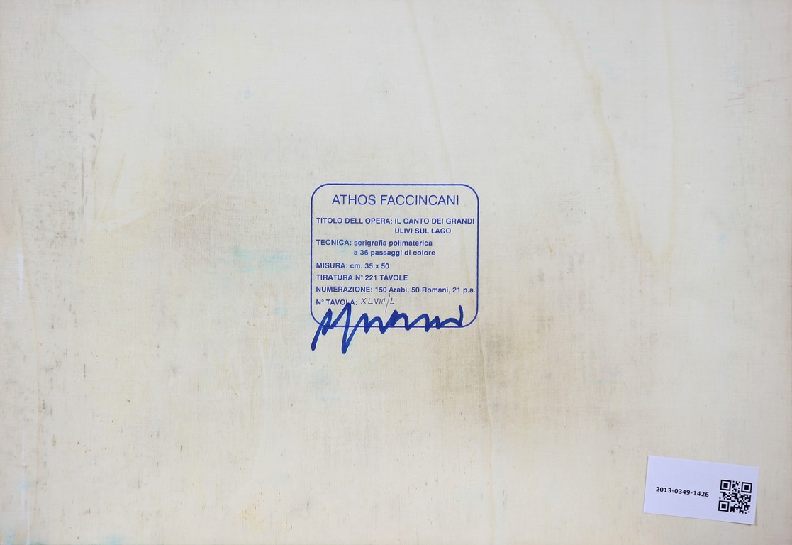 Lotto 543 | FACCINCANI ATHOS (n. 1951) Il canto dei grandi ulivi sul lago. Serigrafia su...