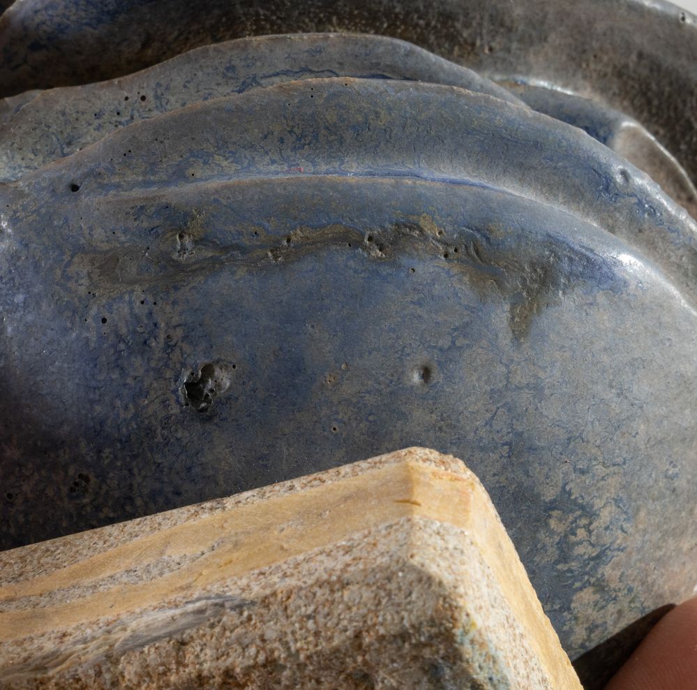 CARLO ZAULI Sfera in ceramica con base in granito. Firma dell'artista. Prod. Zauli, Italia, 1970 ca. Cm 14x11x11