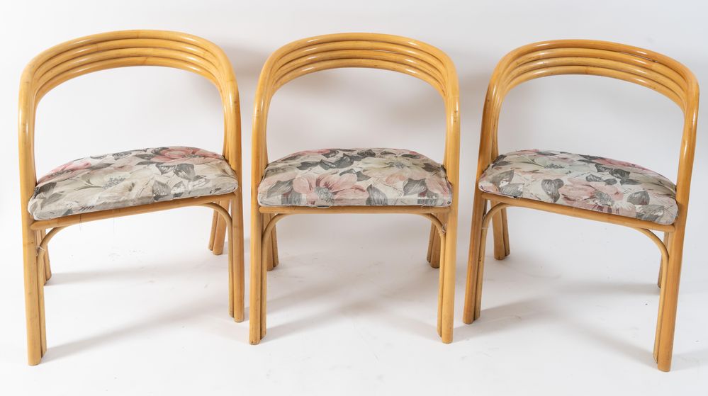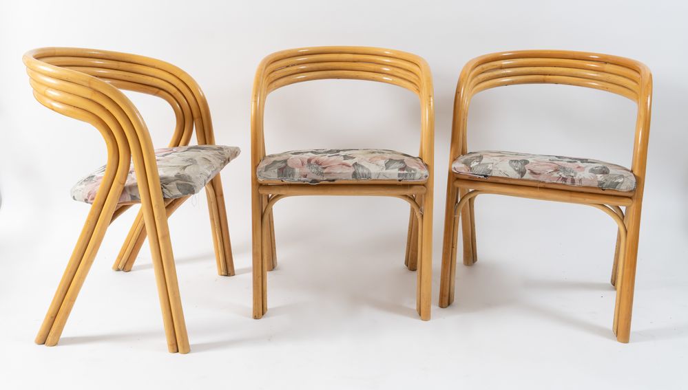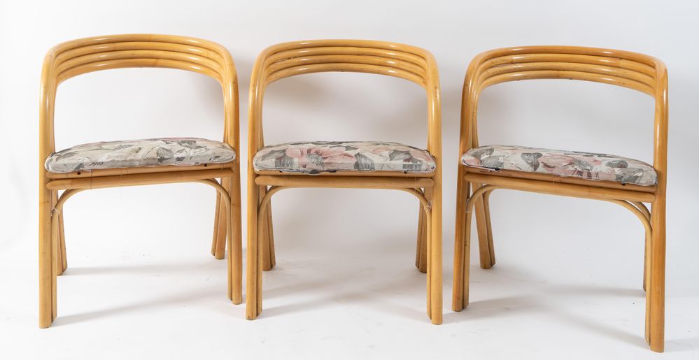 Lotto 89 | AXEL ENTHOVEN (Attribuito) Tre sedie in legno laccato con seduta in stoffa....