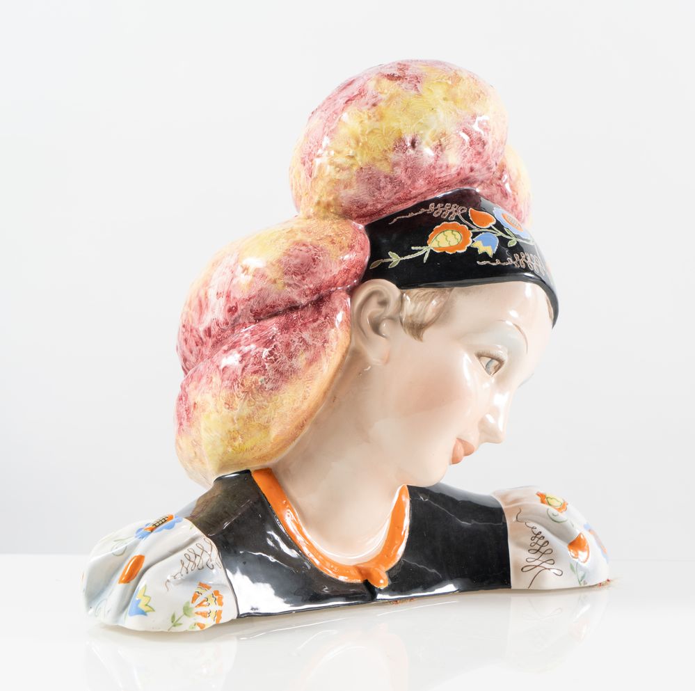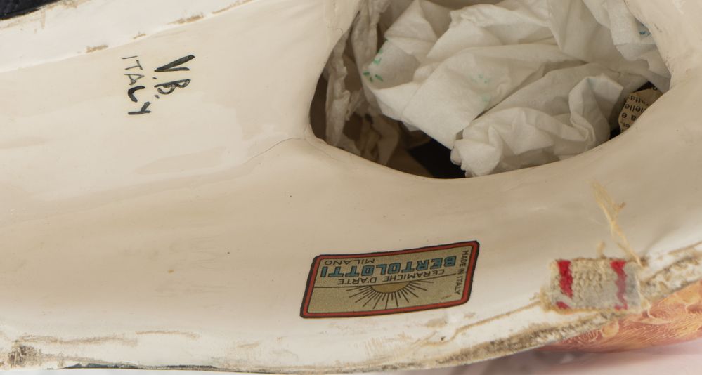 VICTOR BERTOLOTTI Ceramica policroma smalatata. Firma dell'artista ed etichetta originale. Prod. Bertolotti Ceramiche, 1960 ca. Cm 35x39x20