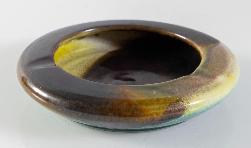 PINO CASTAGNA posacenere in ceramica policroma. Firma dell'artista. Prod....