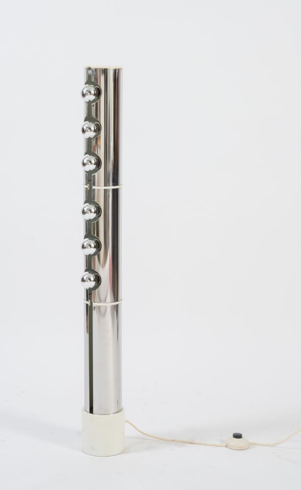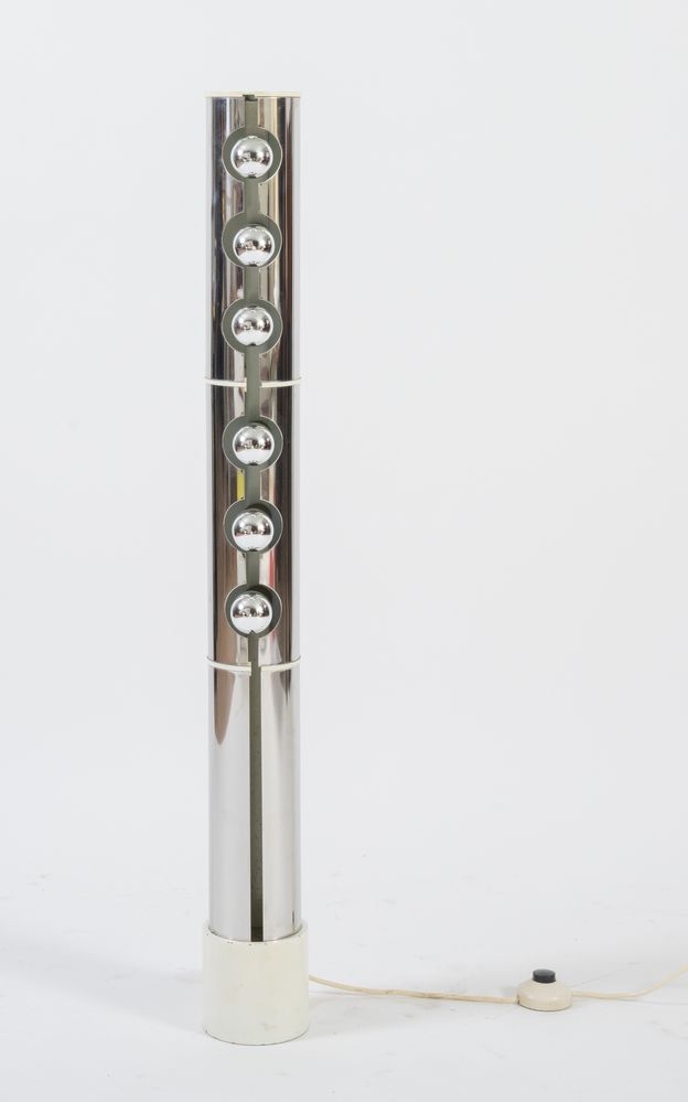 LUCI MILANO (Attribuito) Lampada da terra in metallo con lampadine a vista. Prod. Italia, 1970 ca. Cm 101x12x12