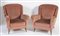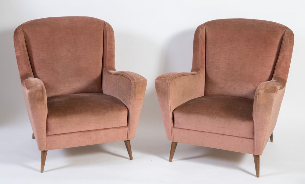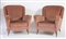 Coppia di poltrone con struttura in legno e rivestite in tessuto. Lievi...