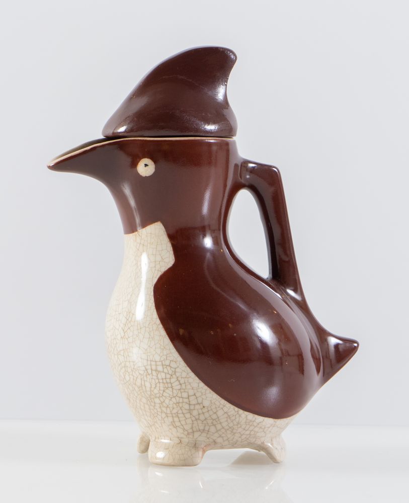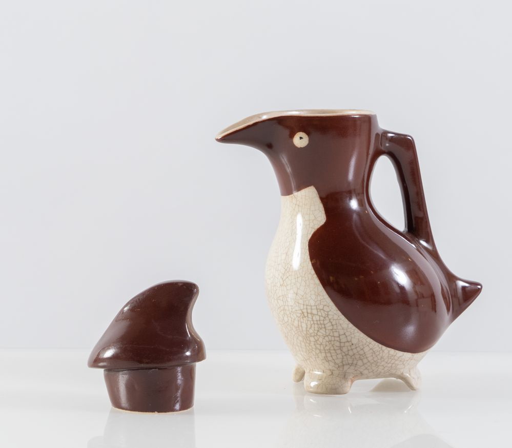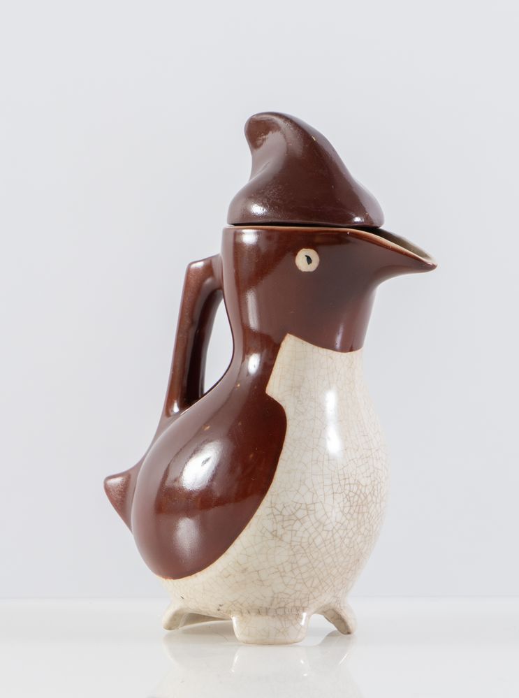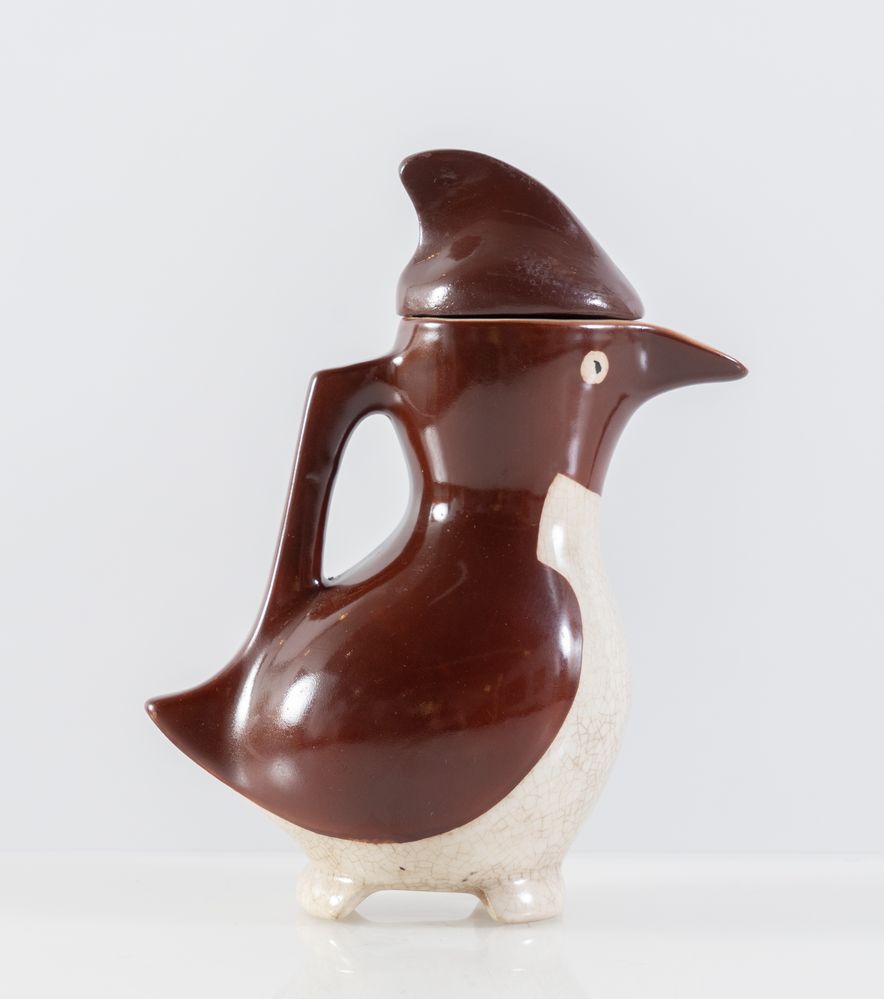 EDOUARD MARCEL SANDOZ Brocca in ceramica smaltata modello 'Penguin'. Firma dell'artista. Prod. Richard Ginori, Italia, 1950 ca. Cm 19x14x8