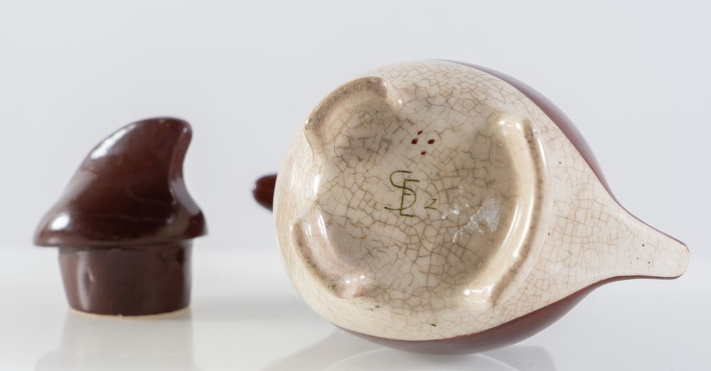 EDOUARD MARCEL SANDOZ Brocca in ceramica smaltata modello 'Penguin'. Firma...