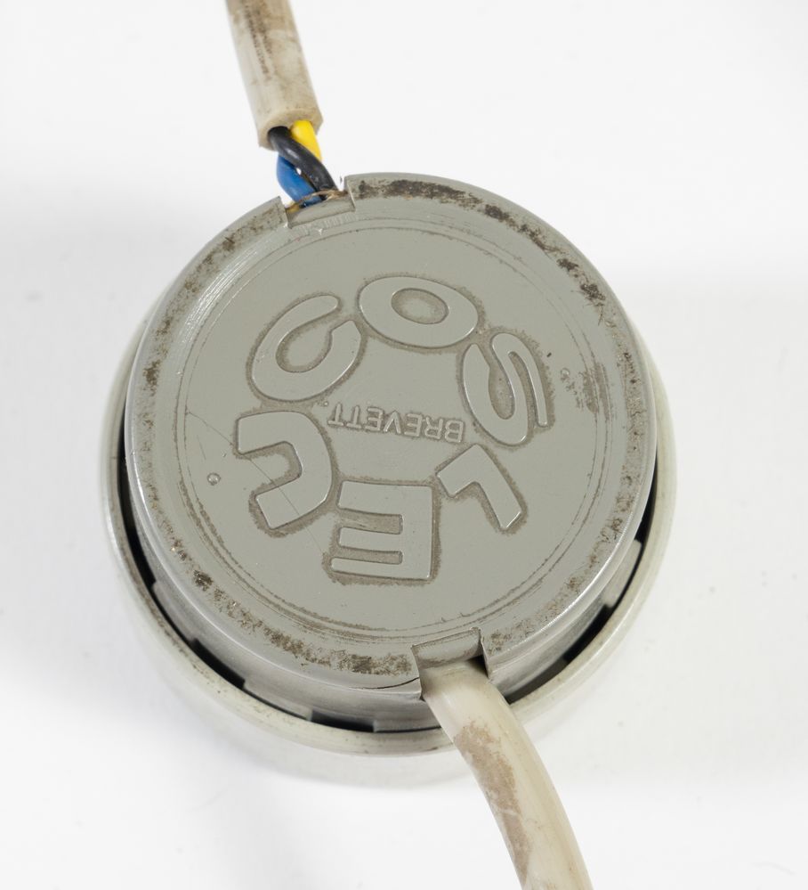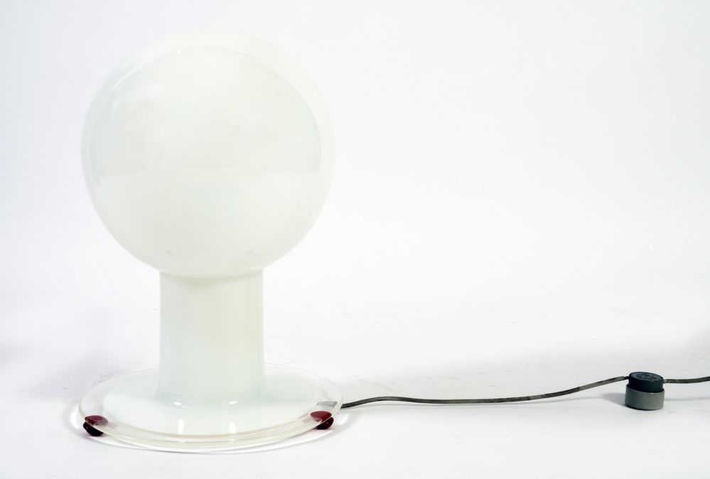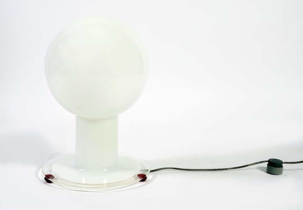 RENATO TOSO Lampada da terra costituita da diffusore in vetro opalescente con, all'interno, elemento metallico modello 'Nefele'. Marchio originale. Prod. Leucos, Italia, 1968 Cm 56x33x33