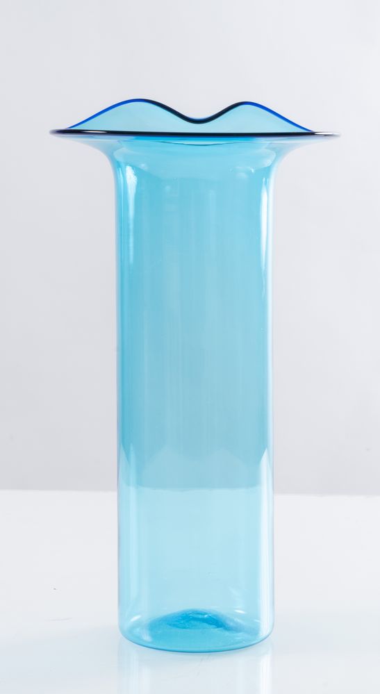 OWE THORSSEN & BRIGITTA KARLSSON Vaso in vetro soffiato modello 'Svolazzi'. Firma del produttore incisa. Prod. Venini, Italia, 1987 Cm 29x13x13