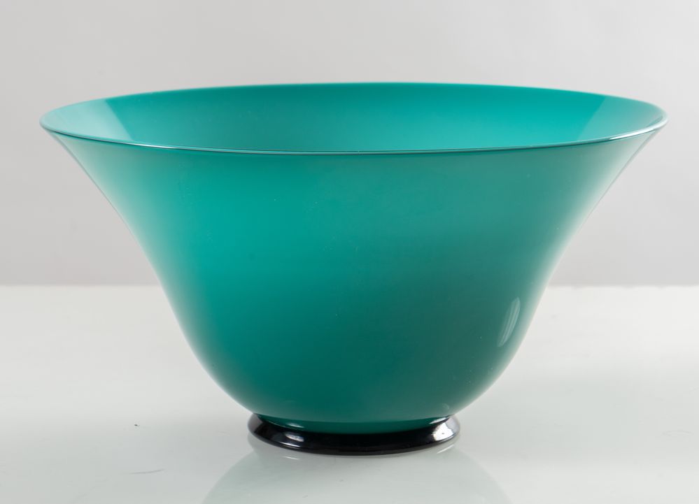 VENINI Vaso in vetro soffiato. Firma del produttore incisa. Prod. Venini, Italia, 1988 Cm 12,5x24x24