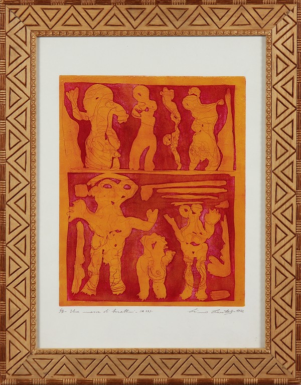 ANONIMO Una massa di burattini. 1922. Litografia. Cm 35,00 x 47,00. Tir.6/7. Firmato Primo Pantoli e datato in basso a destra.Titolo in basso a sinistra. Cornice presente